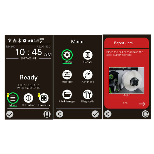 Entre los códigos de barras lineales y 2D, la impresora TSC MH 340 incluye muchos de los más empleados actualmente: entre algunos de ellos, tenemos los unidimensionales como Code 39, Code 128 y EAN; en cambio, de los bidimensionales cuenta con Código QR, DataMatrix y PDF-417. Además viene incluído con una pantalla de 3.5 pulgadas con 6 botones de control para poder configurar y gestionar la impresora.